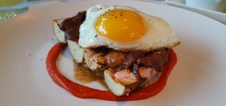 Glazed breast of chicken with mushroom risotto and eggplant ratatouille